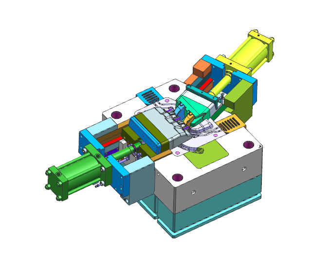 1. 此項目屬汽車曲軸箱模具,產品氣密性要求比較嚴格,模具入料方案采用在壁厚位置撘底的方案;