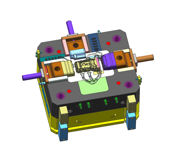 產(chǎn)品側(cè)面的倒扣特征采用斜頂結(jié)構(gòu),斜頂座滑動(dòng)結(jié)構(gòu)采用圓頭方式,保證了斜頂在運(yùn)行中的穩(wěn)定性。
