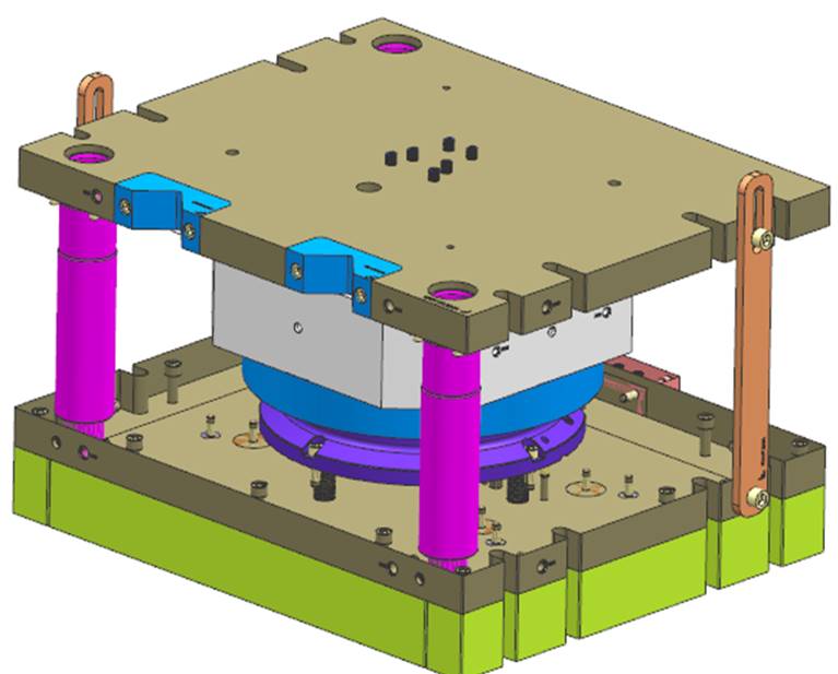 本公司設(shè)計(jì)的方向盤修飾模具,采用了全包圍式的結(jié)構(gòu)設(shè)計(jì),通過下模定位,上模沖剪的結(jié)構(gòu),實(shí)現(xiàn)了方向盤生產(chǎn)過程的穩(wěn)定和精度要求;其特征主要體現(xiàn)在: