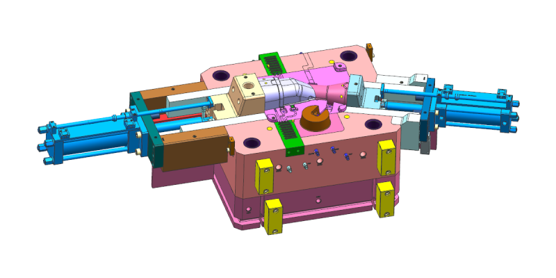 2. 模具結(jié)構(gòu)采用機(jī)械力先將行位撥動5-10.00mm,油缸在抽出產(chǎn)品,有效減少行位抱緊在產(chǎn)品內(nèi);