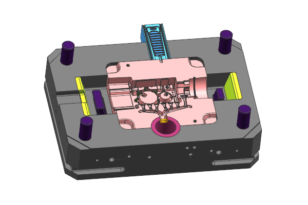 產(chǎn)品內(nèi)側(cè)的抱緊力較大,為避免液壓油缸出現(xiàn)拉不動(dòng)而抱緊在行位上,模具設(shè)計(jì)的結(jié)構(gòu)采用機(jī)械力先將行位抽出一部分來避免該問題的發(fā)生。
