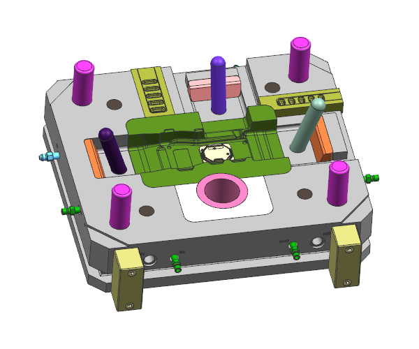 產(chǎn)品側(cè)面的倒扣特征采用斜頂結(jié)構(gòu),斜頂座滑動(dòng)結(jié)構(gòu)采用圓頭方式,保證了斜頂在運(yùn)行中的穩(wěn)定性。